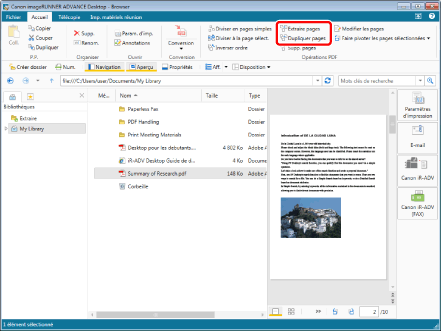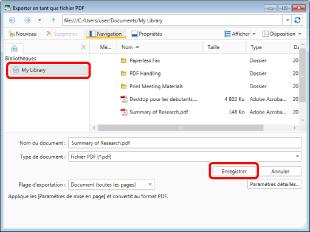 Chacun des documents PDF extraits ou dupliqués est enregistré avec la mention "_numéro de la page sélectionnée" à la fin du nom du document source. Ce numéro est calqué sur le nombre de chiffres contenus dans le nombre de pages avant l'extraction ou la duplication. Cependant, si le dossier de destination comporte un autre document portant le même nom, "(2)" est ajouté à la fin de "_numéro de la page sélectionnée".