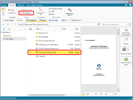 Les informations relatives à la position des annotations, définies lors de l'enregistrement dans les favoris, sont également sauvegardées.