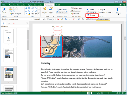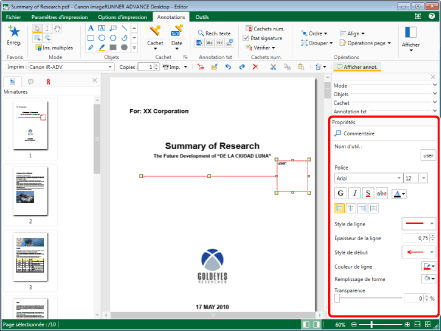 Même lorsque des annotations sont regroupées, vous pouvez sélectionner des annotations individuelles du groupe pour modifier les propriétés et le texte, etc.