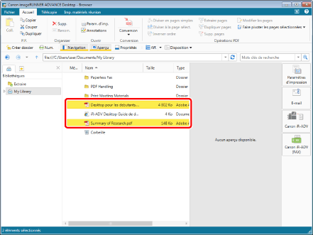 Si vous sélectionnez [Ne pas conserver le document original], les deux documents divisés sont enregistrés dans la bibliothèque, et le document original n'y est pas conservé.
