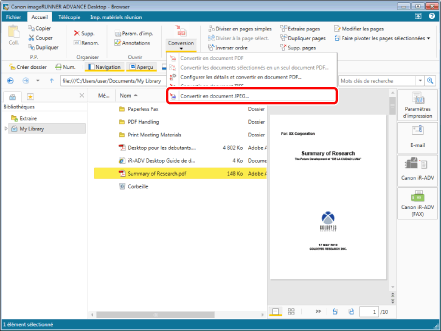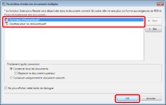 Si vous sélectionnez [Convertir en document PDF], les documents sont convertis séparément.