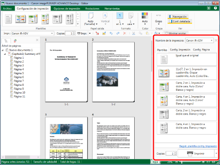 Pestaña [Plantillas]: puede seleccionar una plantilla de ajustes de impresión. También puede registrar los ajustes de impresión especificados en el documento que está editando como una plantilla de ajustes de impresión nueva.
