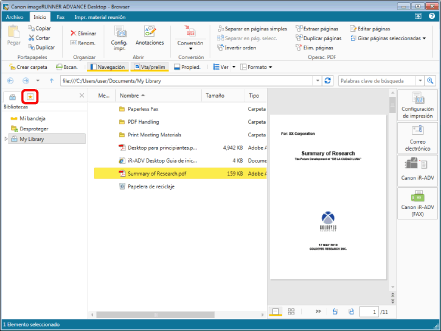 (Bibliotecas): muestra una vista de árbol de bibliotecas, carpetas de protección y carpetas de Mi bandeja.