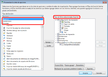 El comando o grupo seleccionado se añade a la lista de la derecha.