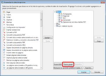 Si hace clic en [Nuevo grupo] después de seleccionar un grupo de la lista de la derecha, [Nuevo grupo(Personalizado)] se añade debajo del grupo seleccionado.