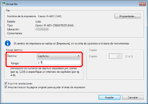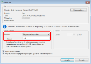 El orden de entrada de [Rango] no es el orden de envío. Independientemente de si introduce "1.2" o "2.1", las páginas se enviarán en el orden "1.2".