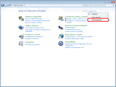Todos los elementos del panel de control se muestran en [Panel de control].