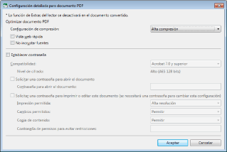 Seleccione los ajustes de compatibilidad de seguridad del documento PDF.