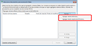 Para convertir un documento de una Carpeta de Windows, seleccione [Agregar desde carpeta de Windows].