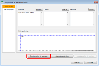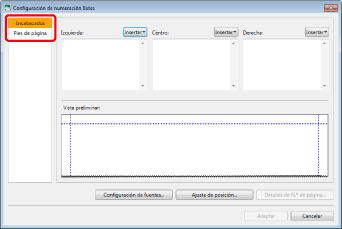 [Izquierda] > [Centro] > [Derecha] para el encabezado > [Izquierda] > [Centro] > [Derecha] para el pie de página