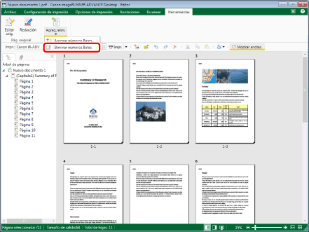 Al convertir varios documentos a formato PDF, se numerarán las páginas de cada documento.