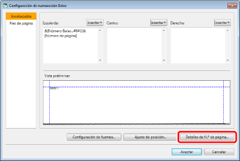 Un número que supere la cantidad de dígitos especificada en [Número de dígitos] no se podrá establecer en [Número inicial]. No obstante, se establecerá un número que supere el número de dígitos especificado si el número de dígitos se supera durante el proceso de adición del número Bates.