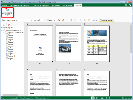 Los documentos con varias páginas se exportan como un documento JPEG por separado para cada página.