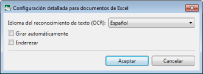 Aunque se haya seleccionado correctamente el [Idioma del reconocimiento de texto (OCR)] en [Configuración detallada para documentos de Excel], es posible que se utilicen caracteres diferentes, dependiendo de los caracteres y el formato del documento.