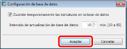 Las opciones de [Configuración de base de datos] son ajustes comunes para todas las Bibliotecas de red (bases de datos).