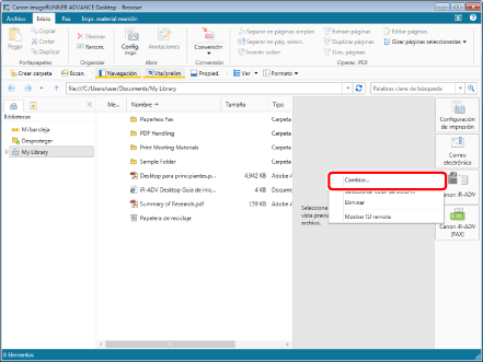 También puede llevar a cabo la misma operación haciendo clic en ▼ en el botón de salida de [Impresora] que aparece en la cinta o en la barra de herramientas y seleccionando [Cambiar]. Si algún botón no aparece en la cinta o en la barra de herramientas, siga estas indicaciones para visualizarlo.