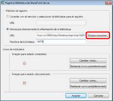 Si no tiene la información URL de una Biblioteca de SharePoint Server, póngase en contacto con su administrador del sistema.