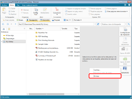 O bien seleccione el menú [Archivo] > [Configuración de la barra de salida] > (nombre de aplicación) > [Eliminar].