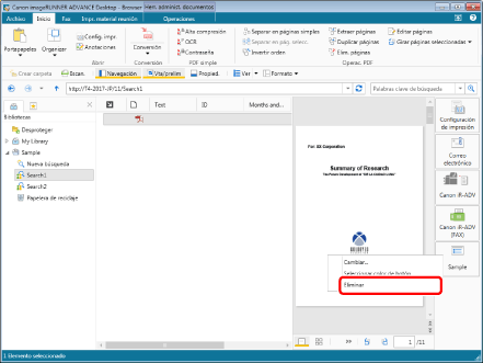 Haga clic con el botón derecho del ratón en [Cambiar datos de índice de documentos] y seleccione [Eliminar].