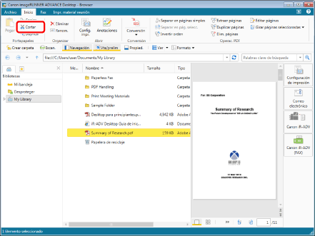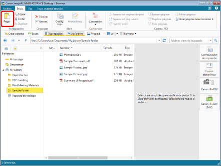 Durante el proceso de generación de la vista preliminar de un documento seleccionado en la Ventana de visualización de la lista de archivos no podrá mover el documento.