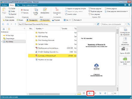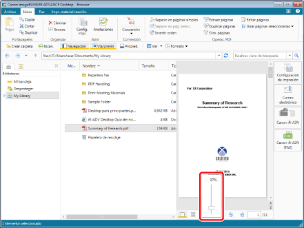 También puede cambiar el factor de ampliación en un 10 % girando la rueda del ratón en la Ventana de vista preliminar mientras pulsa la tecla [Ctrl] en el teclado. Cuando gire la rueda del ratón hacia adelante o hacia atrás, se aumentará o reducirá la ampliación respectivamente.
