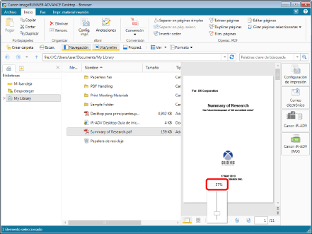 Si desea especificar el factor de ampliación, introdúzcalo directamente en [Zoom]. Puede especificar el factor de ampliación en incrementos de un 1%. Si introduce un valor que sobrepase el límite superior o inferior, las páginas se mostrarán de forma automática en el factor de ampliación disponible más cercano al valor que haya especificado (si se introduce un valor que no sea un número entero, se restaurará el valor anterior).