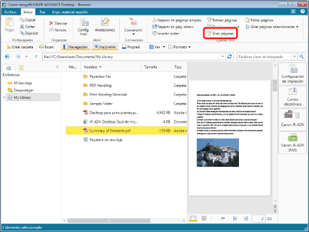 Si elimina una página de un documento PDF con un atributo como "Solo lectura" (Windows), el atributo se invalida en este documento.