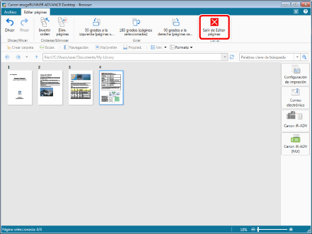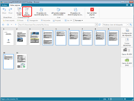 Para seleccionar varias páginas, haga clic sobre ellas mientras mantiene pulsada la tecla [Mayús] o [Ctrl] en el teclado.