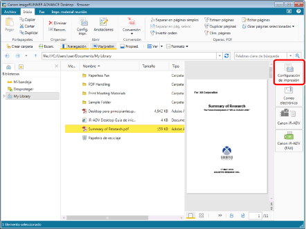 Si selecciona una carpeta o varios documentos, se mostrará la [Configuración del orden de varios documentos]. A continuación encontrará más información.