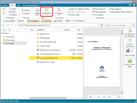 Si abre un documento en una Biblioteca de Document Server, aparecerá un mensaje para confirmar si se desea proteger o desproteger. En ese caso, haga clic en [Sí]. El mensaje que aparece al desproteger también puede ocultarse. Para obtener más información, consulte: