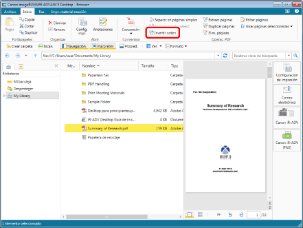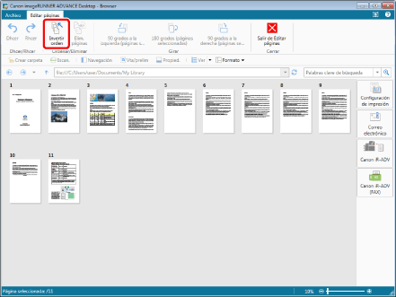 Si invierte el orden de las páginas de un documento PDF con un atributo como "Solo lectura" (Windows), el atributo quedará invalidado en el documento PDF tras invertir el orden de las páginas.