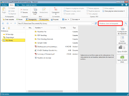 Incluso si utiliza la misma palabra clave de búsqueda, los resultados de búsqueda varían dependiendo de las bibliotecas y carpetas especificadas como objetivo de búsqueda. Para obtener más información, consulte lo siguiente.