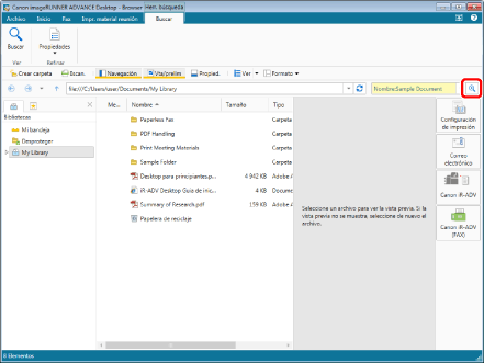 Puede previsualizar los documentos encontrados en la búsqueda en la Pantalla de búsqueda. Para obtener más información, consulte: