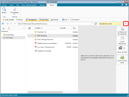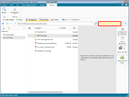 Si no se selecciona ninguna biblioteca o carpeta en la Ventana de navegación