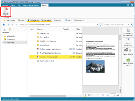 Las páginas que van a exportarse a una Carpeta de Windows solo pueden seleccionarse en la Ventana de vista preliminar para documentos PDF.