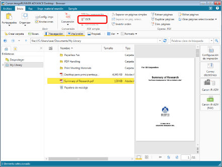 Seleccione el idioma de la función OCR en la lista desplegable.