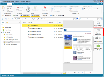 Seleccione el documento que desee adjuntar a un correo electrónico en la Ventana de visualización de la lista de archivos.