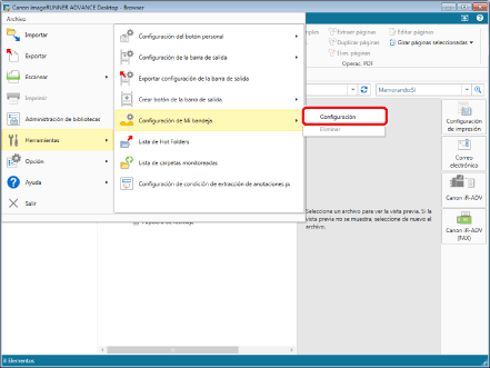 Solo se puede registrar una carpeta como carpeta de recepción (Hot Folder) para transferir documentos a Mi bandeja. No obstante, la carpeta de destino no se mostrará en la [Lista de Hot Folders].