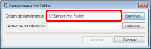 Si mueve o elimina la Carpeta de Windows especificada como carpeta de origen, los Hot Folders dejarán de monitorizarse aunque no se hayan eliminado las opciones del Hot Folders.