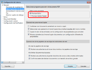 Si Desktop Browser no puede recuperar la aplicación asociada a documentos PDF, aparece [Priorizar aplicaciones].