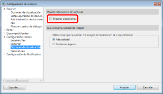 Cuando se ha definido la ocultación de las extensiones, aunque añada una extensión al final del nombre del documento y lo guarde, el texto añadido se considerará como parte del nombre del documento. Sin embargo, si el documento no tiene una extensión, el texto añadido se considerará una extensión.