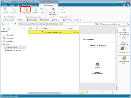 Seleccione la Biblioteca de Document Server, la Biblioteca de SharePoint Server o la Biblioteca de Therefore en la Ventana de navegación.