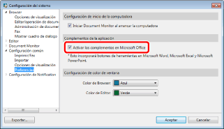 3. Seleccione la casilla de verificación [imageRUNNER ADVANCE Desktop Office Toolbar] y haga clic en [Aceptar].