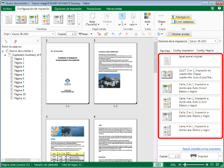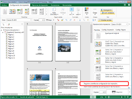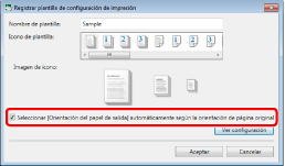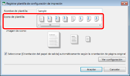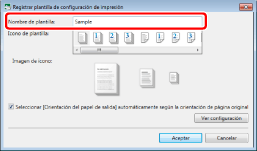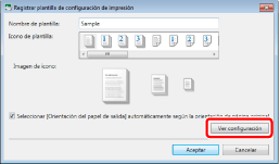 El número de plantillas registradas se puede comprobar en [Administrar plantillas de configuración de impresión]. A continuación encontrará más información sobre [Administrar plantillas de configuración de impresión]. |