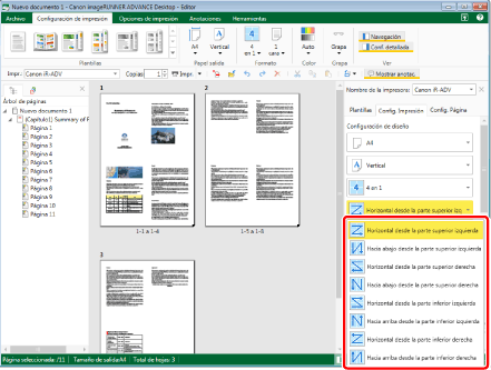 Si ha seleccionado una opción diferente de [2 en 1] para el diseño de página, puede seleccionar los órdenes siguientes de la lista desplegable.