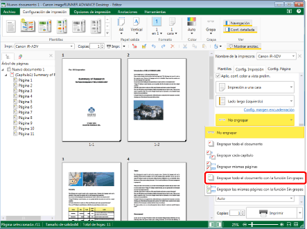 Si no desea utilizar Eco Stapler (sin grapas), seleccione [No engrapar] en la pestaña [Config. Impresión] de la Ventana Detalles, el comando de la cinta o el botón de herramienta.