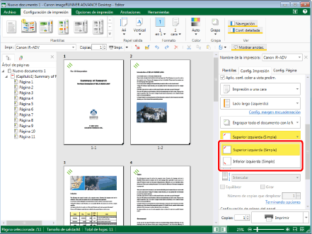 Esta función solo se puede utilizar si selecciona una impresora Canon y la casilla [Usar conf. impr. de Editor] en la pestaña [Config. Impresión] de la Ventana Detalles, el comando de la cinta o el botón de herramienta.