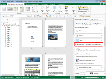 Seleccione esta opción para aumentar/reducir el tamaño de las páginas originales para rellenar el área imprimible.