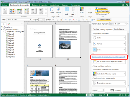 La configuración de aumento/reducción se prioriza en el siguiente orden: página > capítulo > documento.