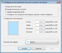 Si no desea configurar el ajuste de aumento/reducción, desmarque la casilla de verificación [Ampliar/reducir original al área de impresión].